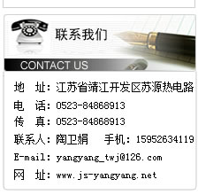 地 址:江蘇省靖江開發區蘇源熱電路 電 話:0523-84868913 傳 真:0523-84868913 E-mail:yangyang_twj@126.com